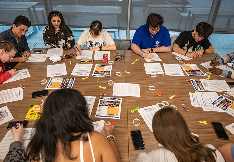 Hoopes envisioned participating in a similar event at Moravian. After visiting the Engagement Fair during his first Accepted Students Day last year and finding out that there wasn’t already a club running a fundraiser quite like Bucs-a-Thon, he knew he wanted to do it himself. So, he created the Pawprint Project, named for Moravian’s mascot, Amos the Greyhound.
